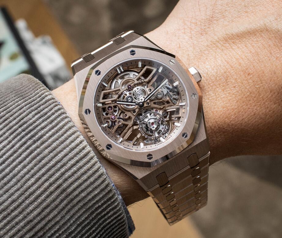 The Royal Oak’s angular case and integrated bracelet offer a significant amount of real estate to showcase Audemars Piguet’s new sand gold alloy, and just as you would expect from a six-figure watch made by one of the world’s most prestigious luxury manufacturers, everything about the Royal Oak Selfwinding Flying Tourbillon Openworked is executed to impossibly high standards. While this same model would likely be equally impressive had it been crafted from any other shade of gold, sand gold simply looks different from anything else currently available in Audemars Piguet’s modern lineup, and it serves as the perfect alternative for those who enjoy the warm hues of rose gold but want something a bit more understated that what you get from a traditional pink gold 2024 China fake watches.